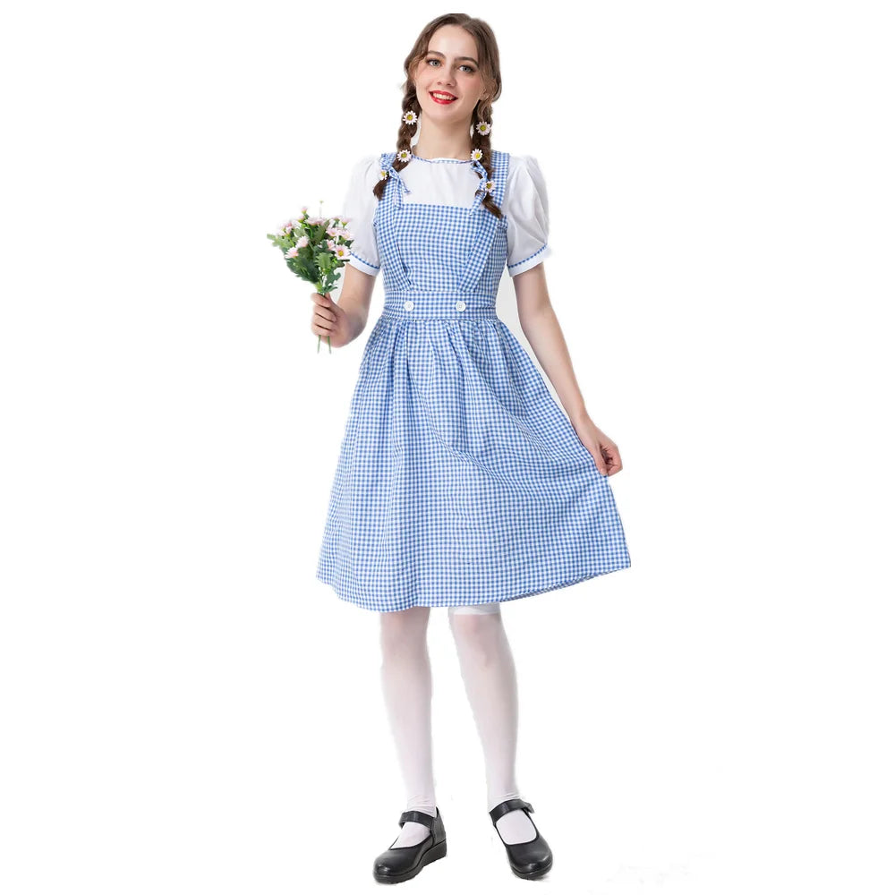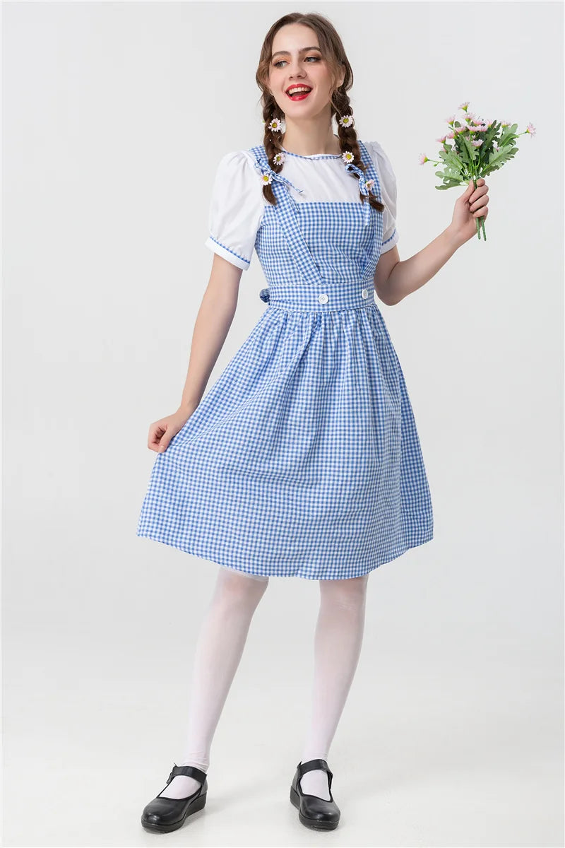 Fantasia da personagem Dorothy do filme O Mágico de Oz, confeccionada em algodão de alta qualidade com acabamento impecável.